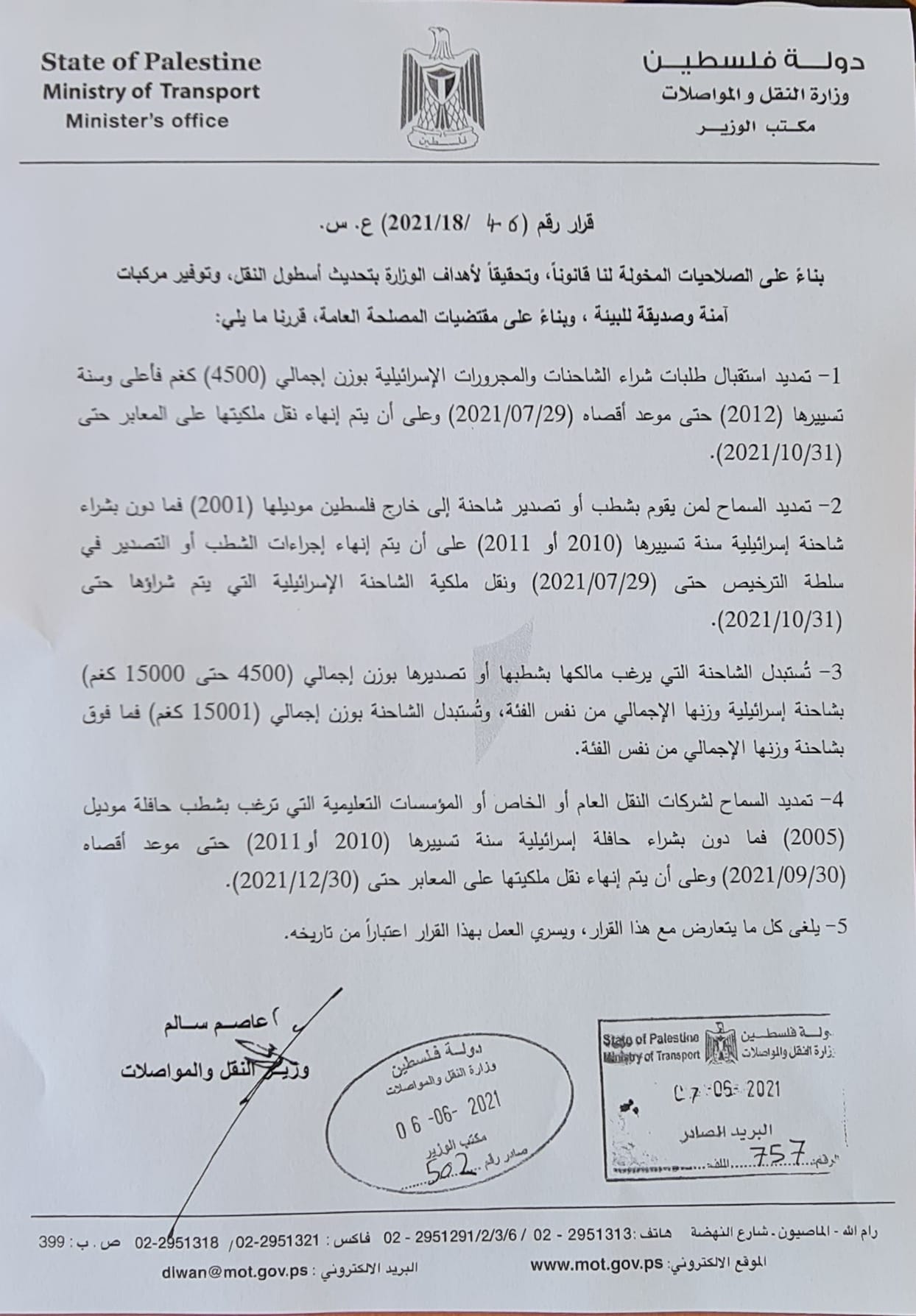 قرارات وزارة النقل والمواصلات بخصوص طلبات شراء الشاحنات واستبدالها.