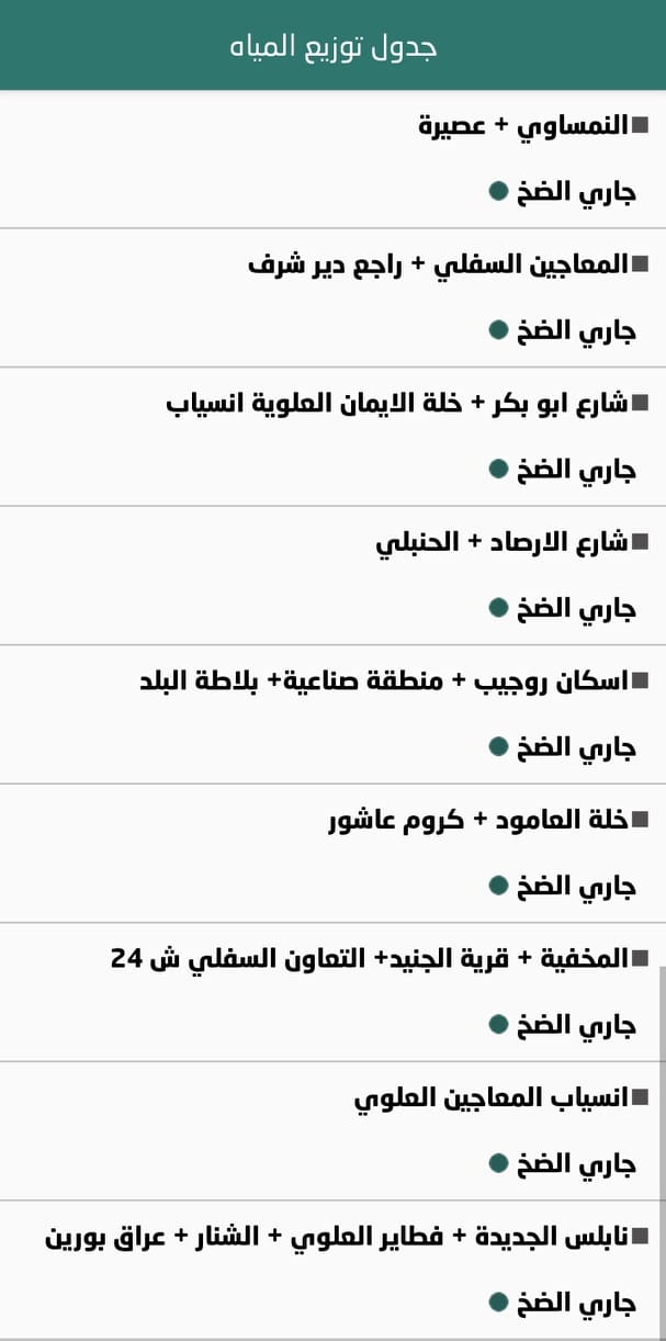 جدول توزيع المياه في نابلس