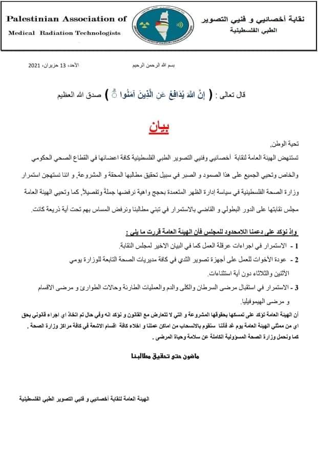 نقابة تصوير الأشعة: استمرار الإجراءات التصعيدية