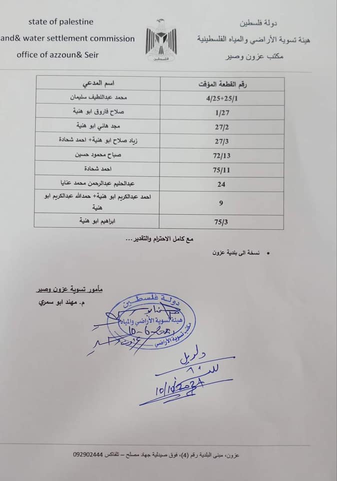 بلدية قلقيلية تدعو مواطنين لمراجعة مكتبي التسوية في عزون وصير.
