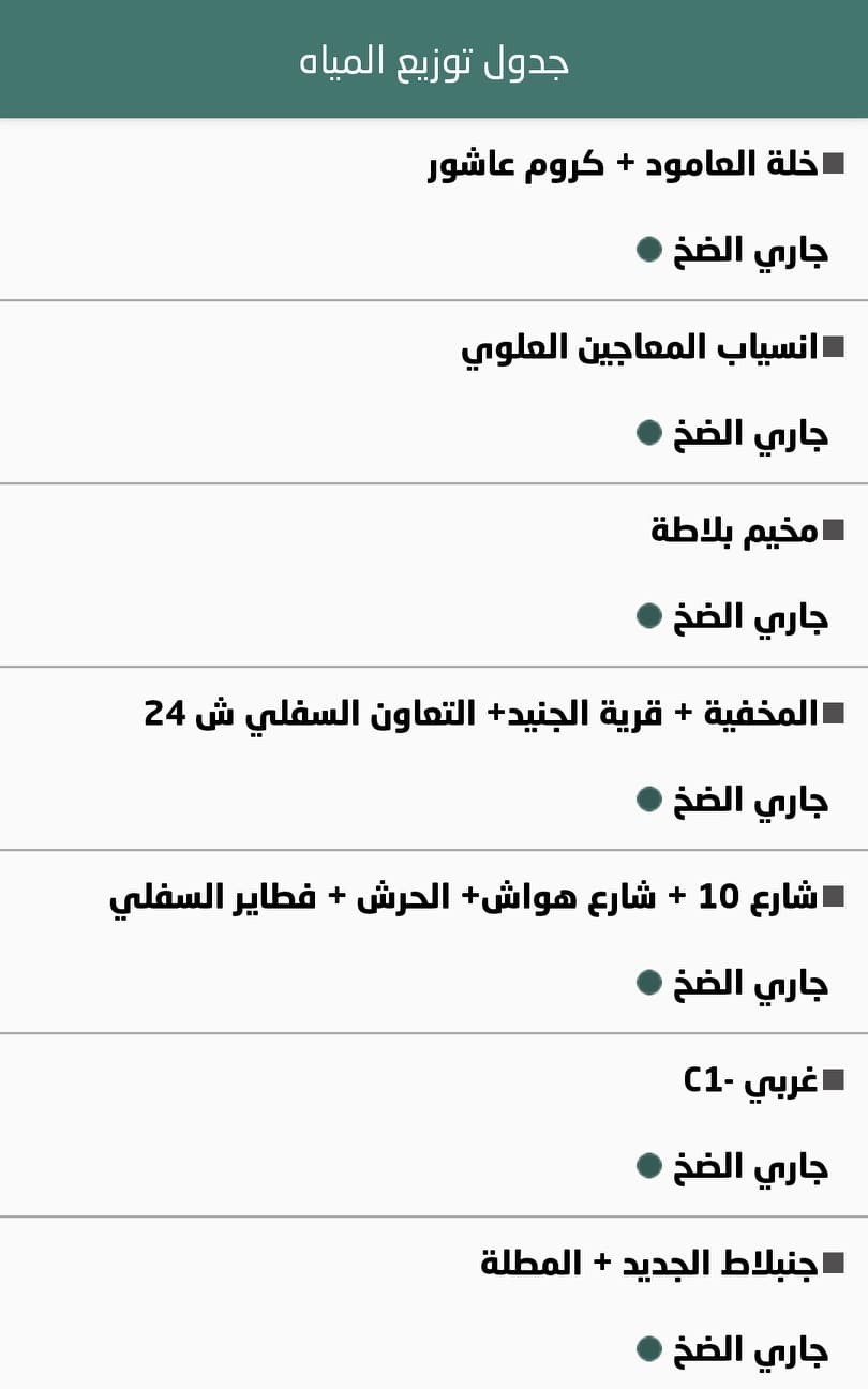 جدول توزيع المياه في نابلس