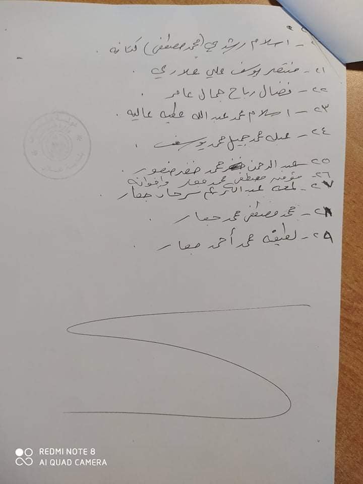 ".. المزارعون الواردة أسماؤهم أدناه ضرورة التواجد غدا الساعة العاشرة صباحا في قاعة بلدية علار الوسطى لحضور اجتماع مع وزارة الزراعة".