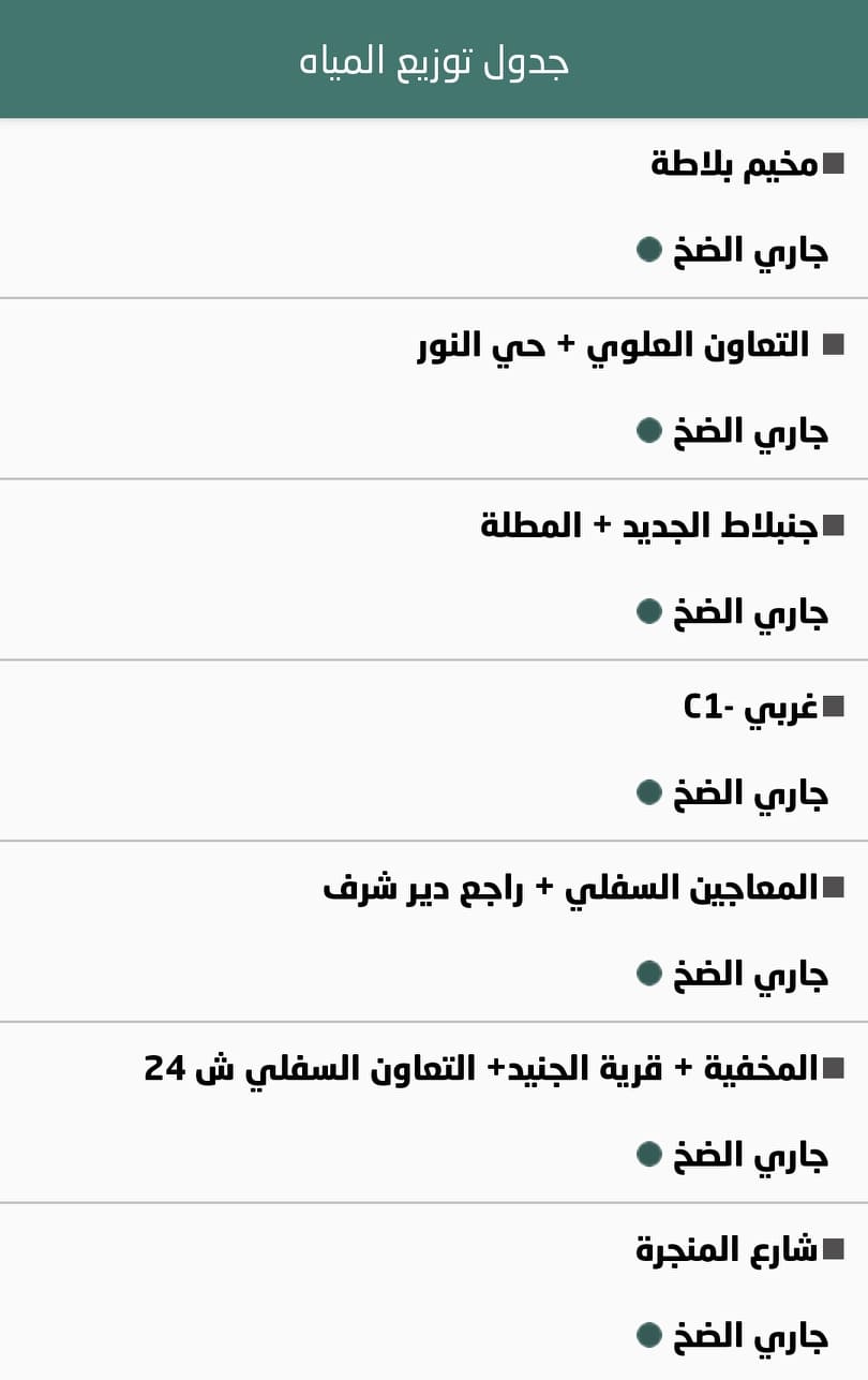 جدول توزيع المياه في نابلس