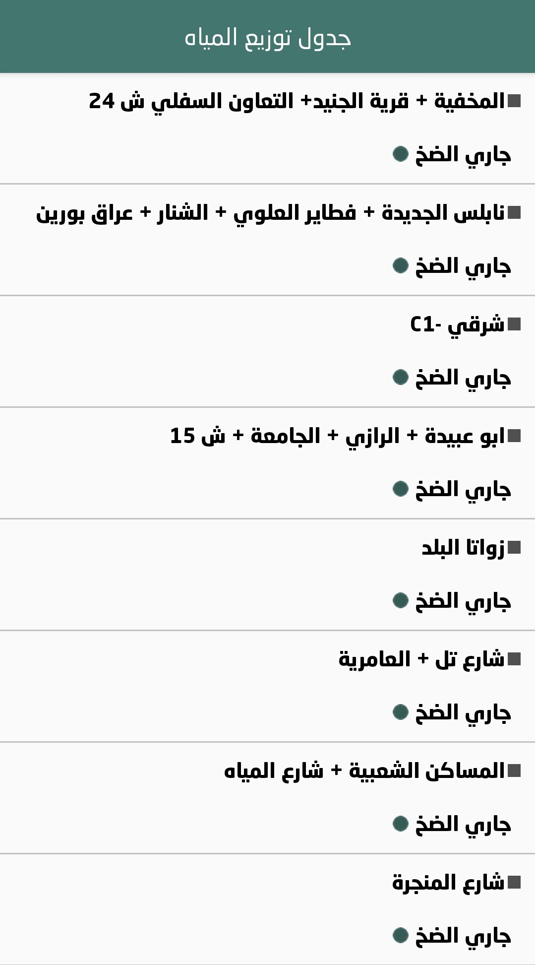جدول توزيع المياه في نابلس وضواحيها الاثنين، 28.6.2021.