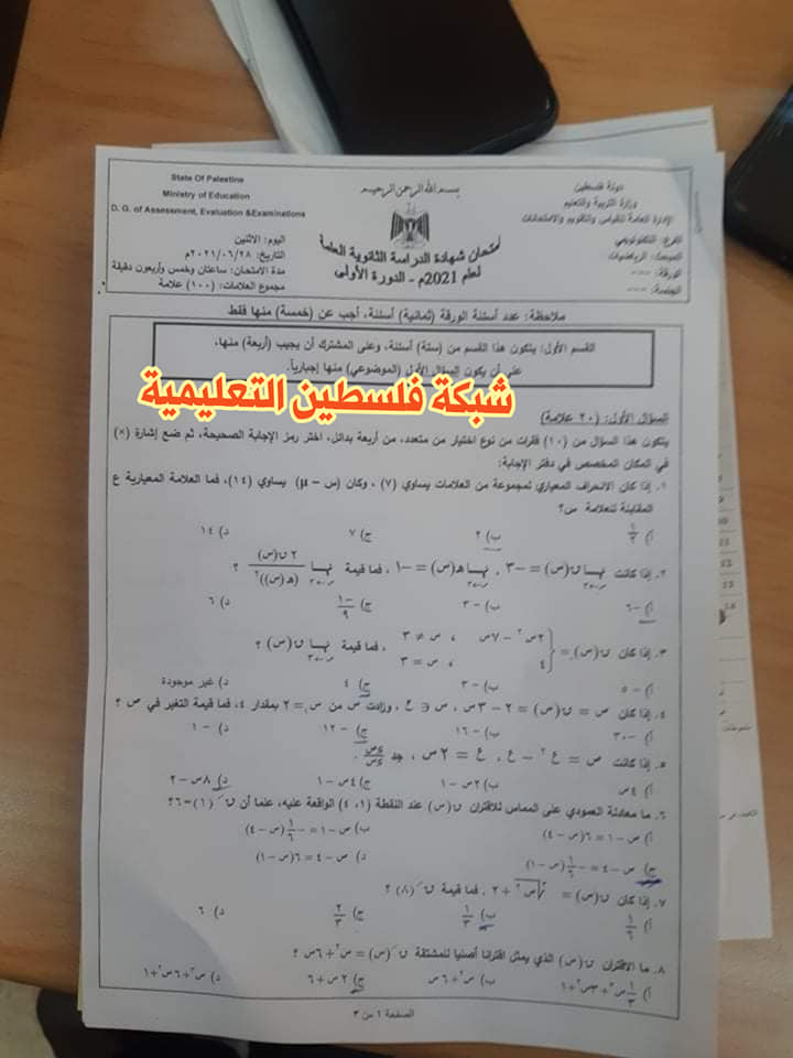 التوجيهي: امتحان الرياضيات - الفرع العلمي