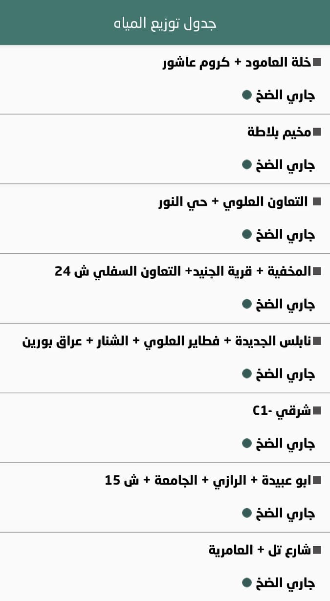 جدول توزيع المياه في نابلس وضواحيها ليوم الثلاثاء 29.06.2021.