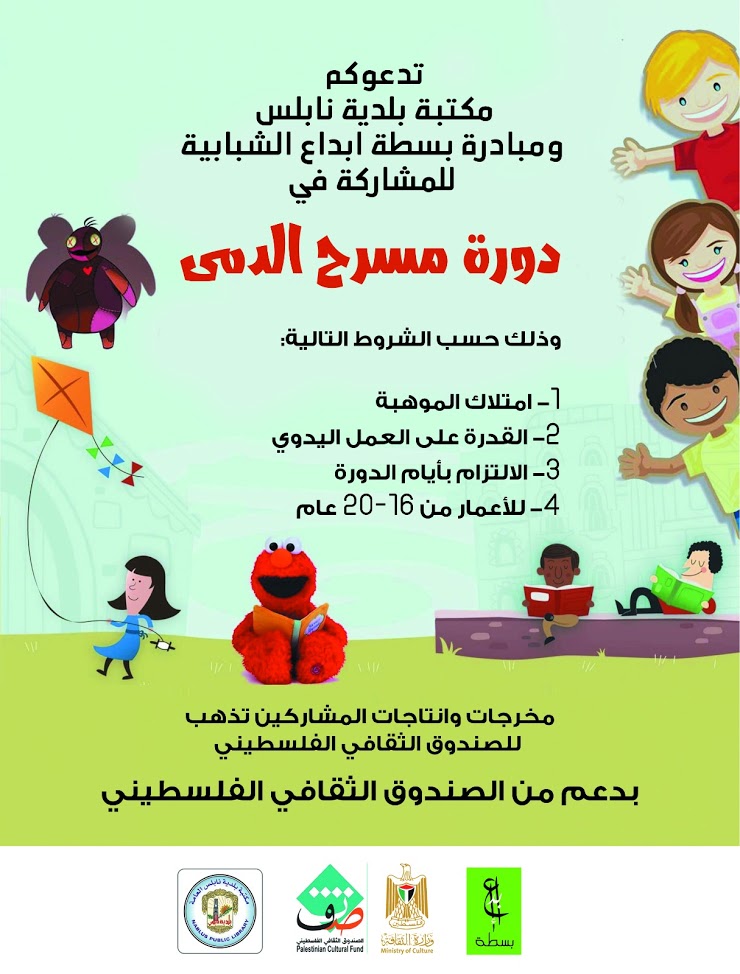مكتبة بلدية نابلس تعلن عن التسجيل في دورة لمسرح الدمى، من عمر 16-20 عاماً.