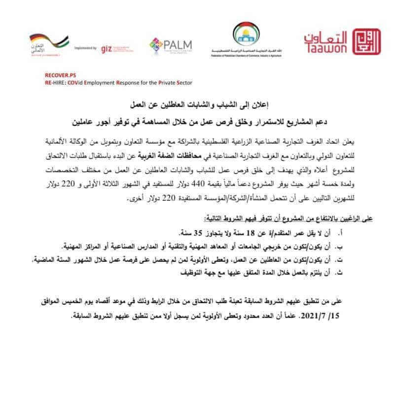إعلان إلى الشباب والشابات العاطلين من العمل