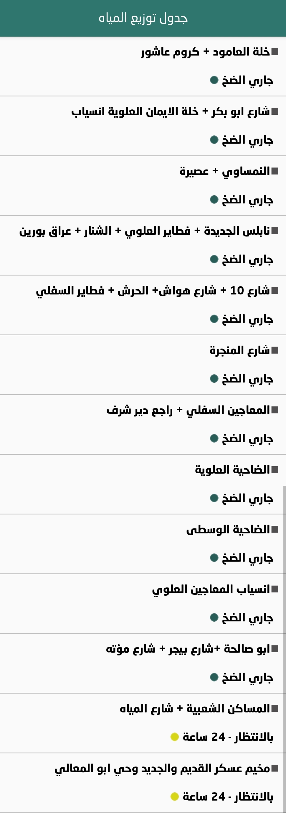 جدول توزيع المياه في نابلس وضواحيها ليوم الجمعة 06.08.2021.