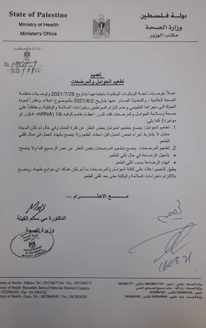 تعميم هام بخصوص تطعيم الحوامل والمرضعات.