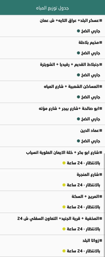 جدول توزيع المياه في نابلس