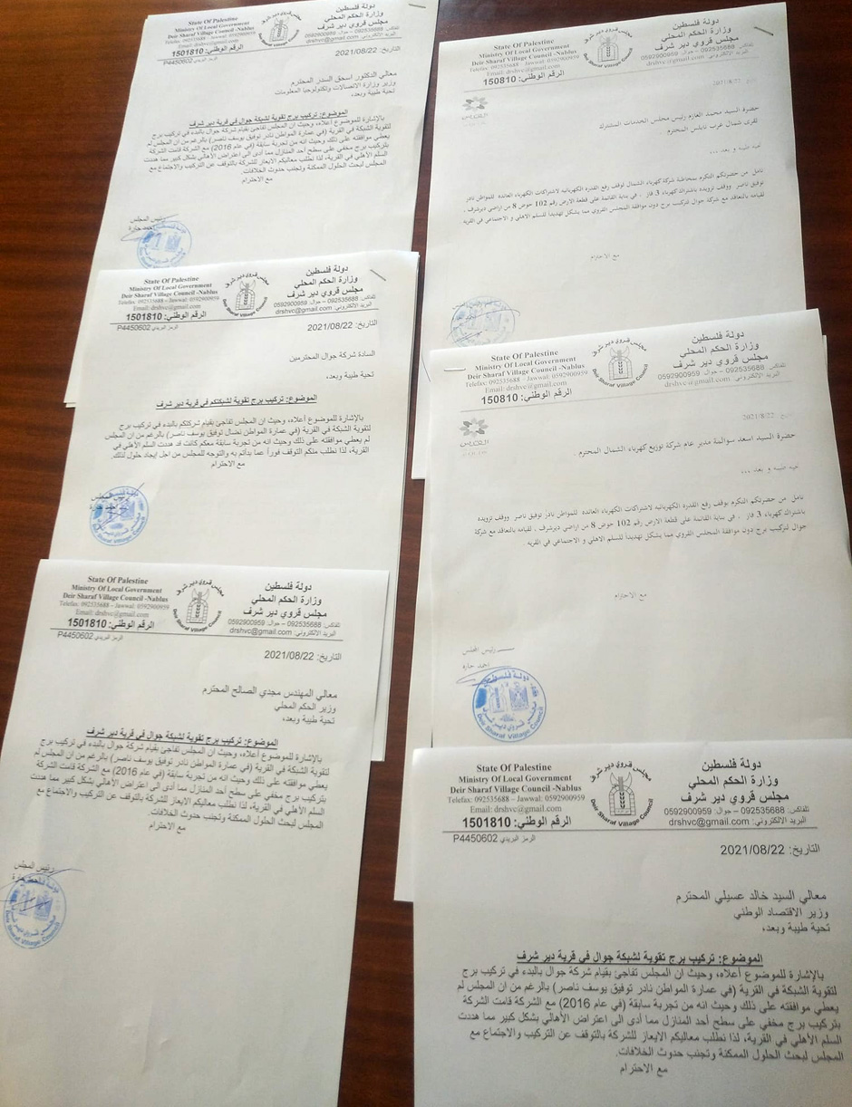 وفيما يلي مراسلات المجلس القروي للمؤسسات المختصه وذات العلاقه بتركب برج جوال في القرية: