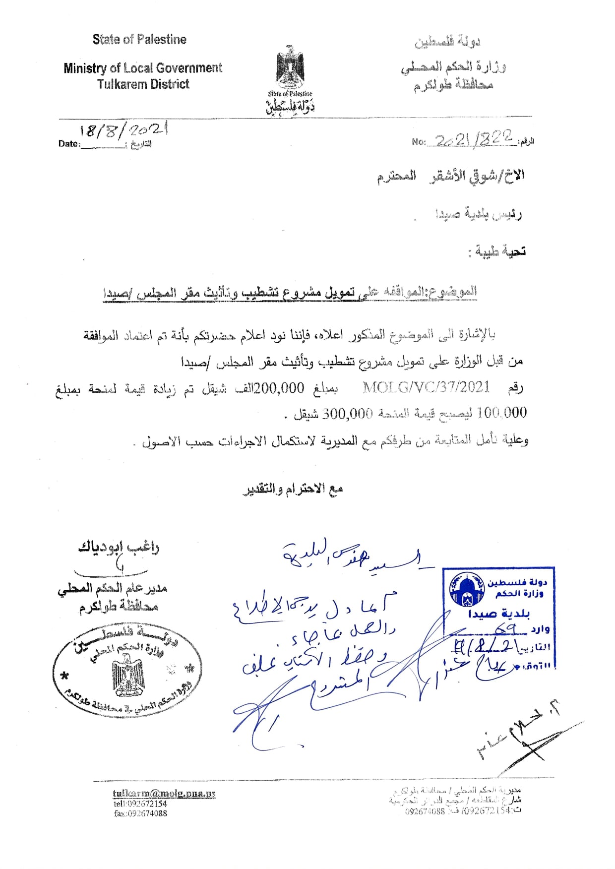 نشرت بلدية صيدا، الاثنين 24.8.2021، حصولها على مشروعين من وزارة الحكم المحلي.