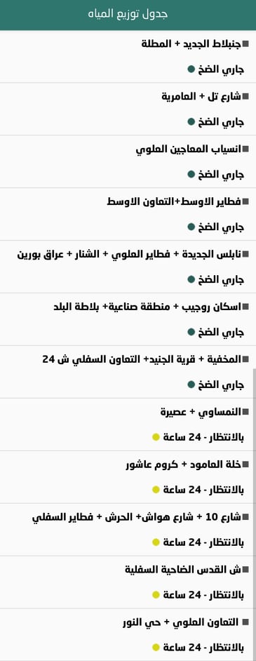 جدول توزيع المياه في نابلس