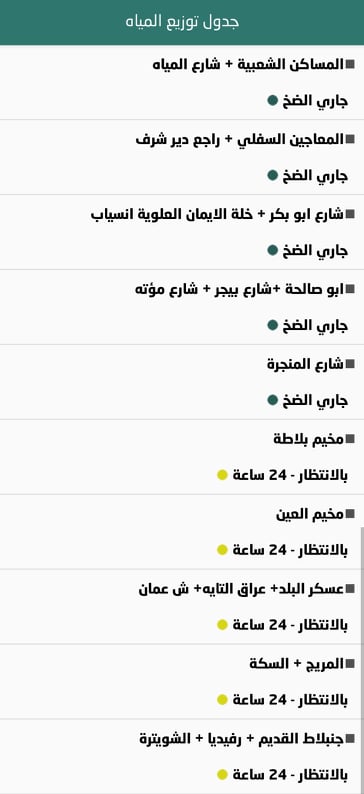 جدول توزيع المياه في نابلس وضواحيها، الجمعة 3.9.2021.