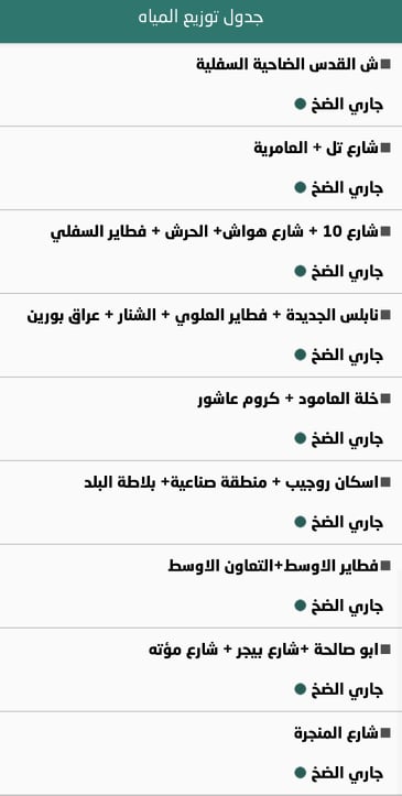 جدول توزيع المياه في نابلس
