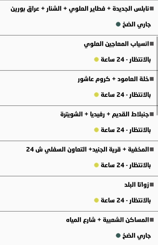 جدول توزيع المياه في نابلس وضواحيها ليوم الجمعة 17.09.2021.