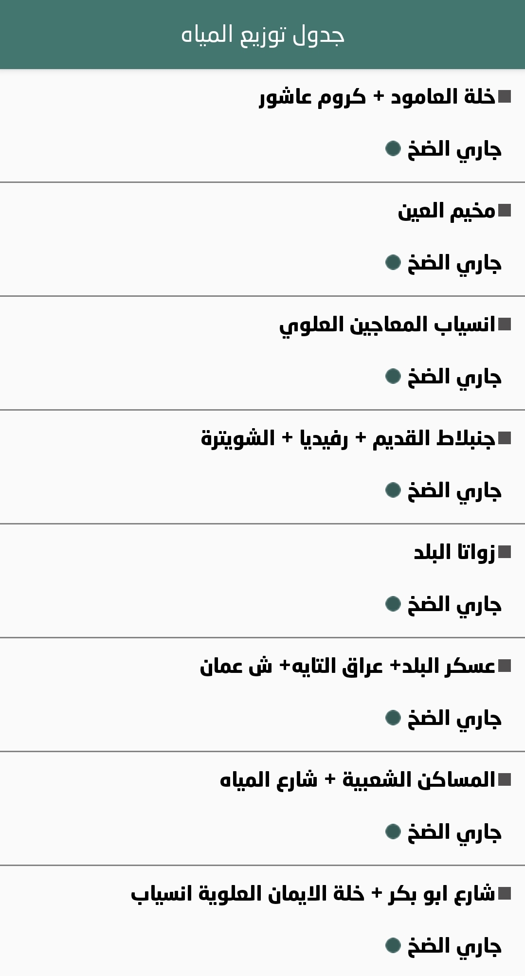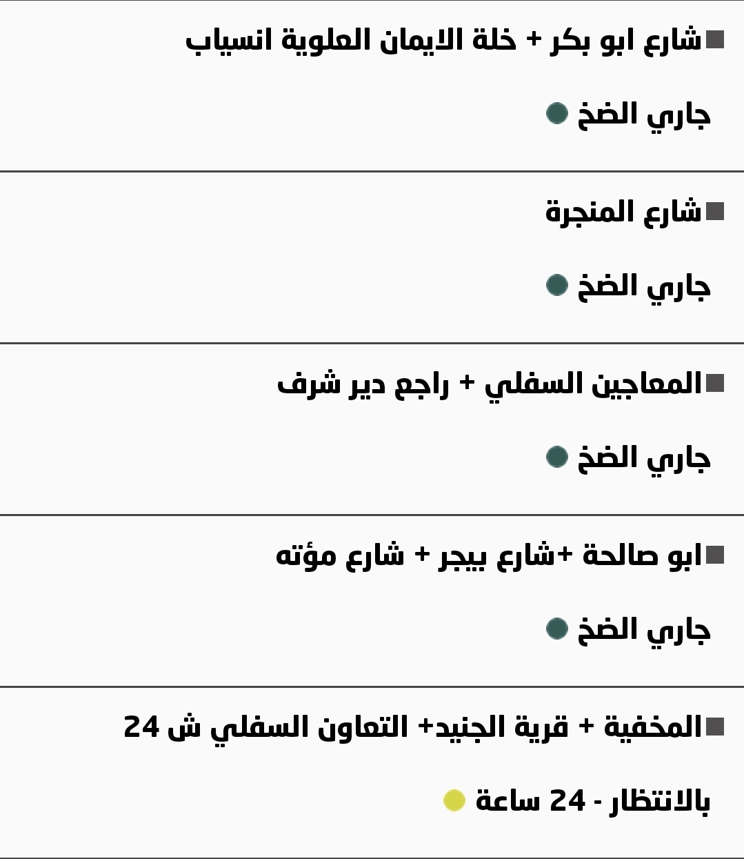 جدول توزيع المياه في نابلس