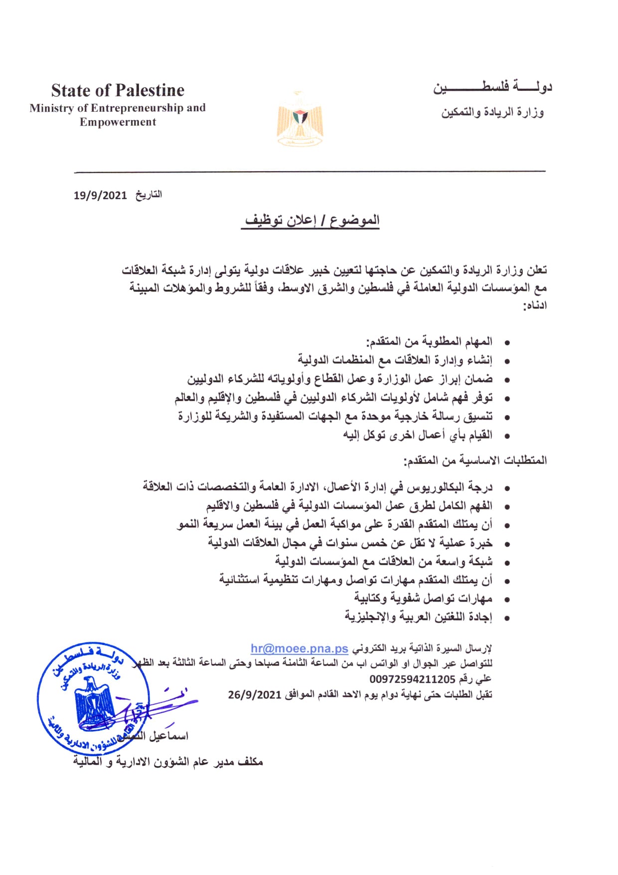 على كل متقدم إرسال السيرة الذاتية وتحديد الوظيفة المراد التقدم لها عبر البريد الإلكتروني: Hr@moee.pna.ps