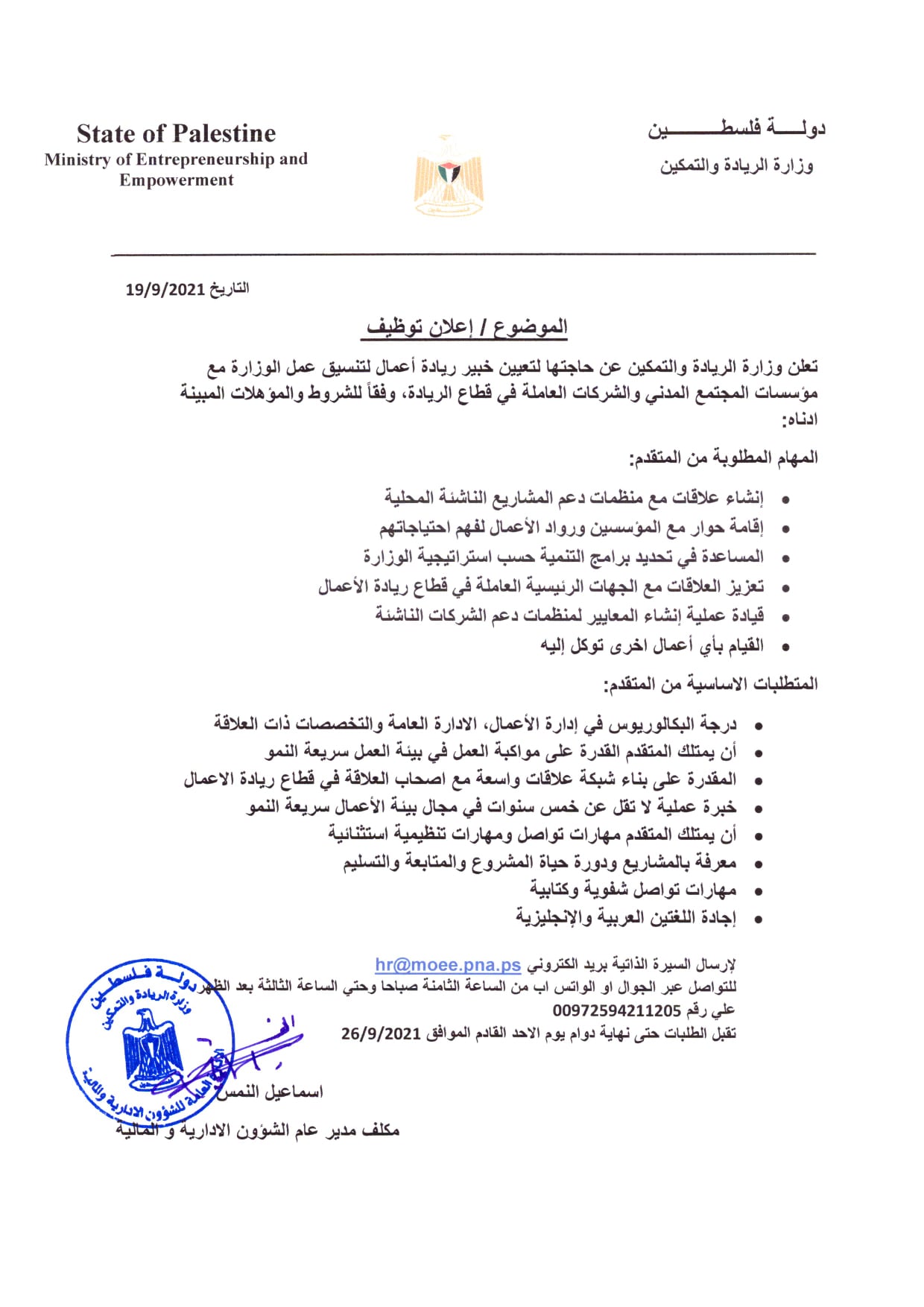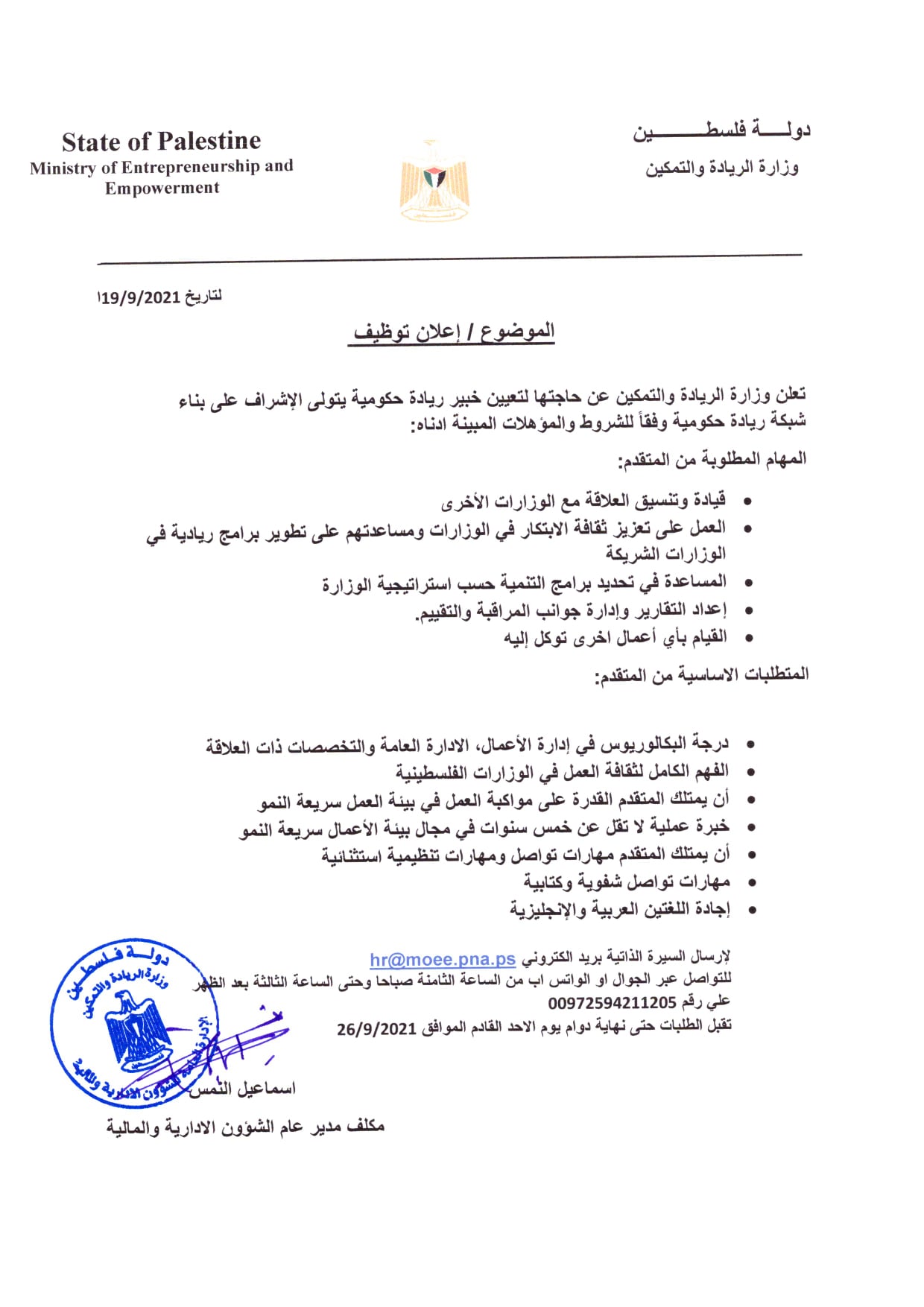 تعلن وزارة الريادة والتمكين عن إعادة طرح إعلان توظيف خبراء للوظائف التالية: