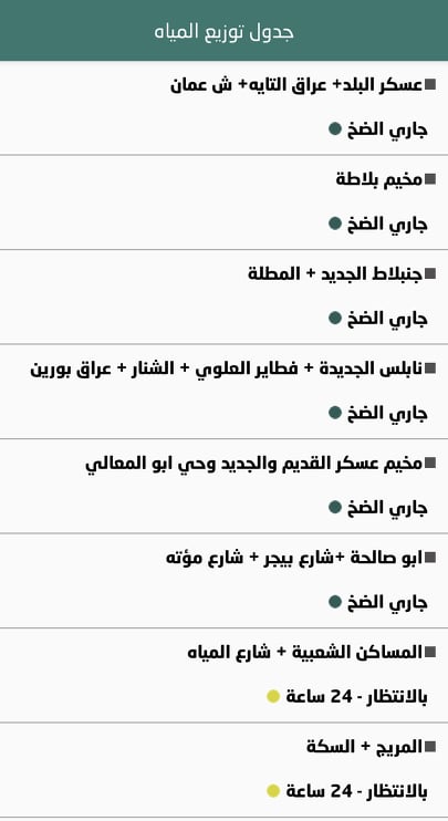 جدول توزيع المياه في مدينة نابلس وضواحيها ليوم الخميس 23.09.2021.