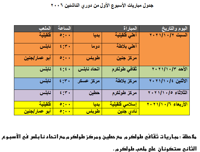 الاتحاد الفلسطيني لكرة القدم ينشر جدول مباريات الأسبوع الأول من دوري الناشئين 2006.