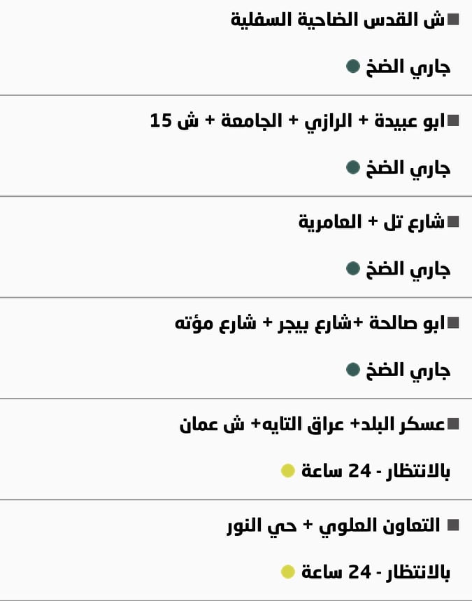 جدول توزيع المياه في نابلس