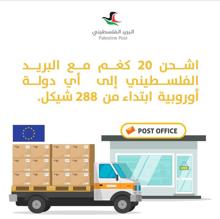 البريد الفلسطيني يقدم عروضاً لشحن الطرود البريدية إلى دول القارة الأوروبية بأقل من 300 شيكل.
