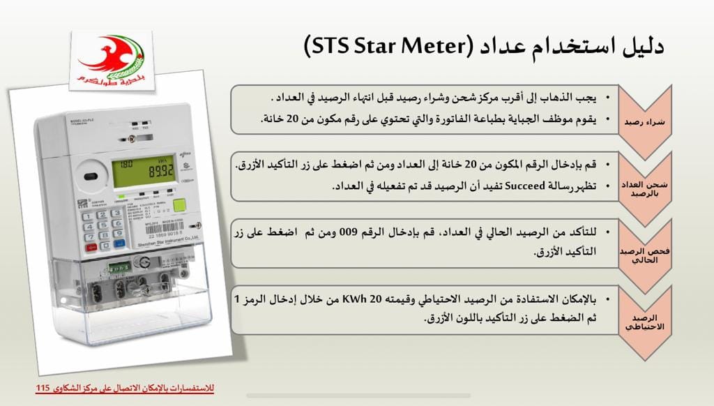 دليل استخدام عداد الكهرباء (STS Star Meter) الجديد.