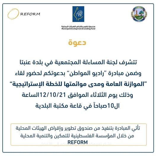 بلدية عنبتا: دعوة لحضور لقاء الموازنة العامة