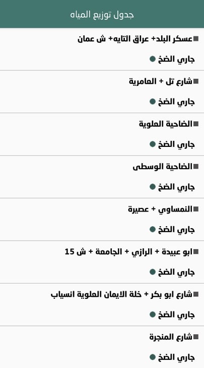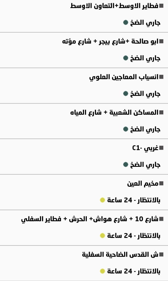 جدول توزيع المياه في نابلس