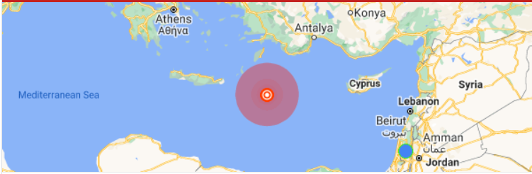 وكان مركز الزلزال على بعد حوالي 200 كم من جزيرة رودوس اليونانية وشعر به سكان فلسطين وقبرص وتركيا ومصر وليبيا.