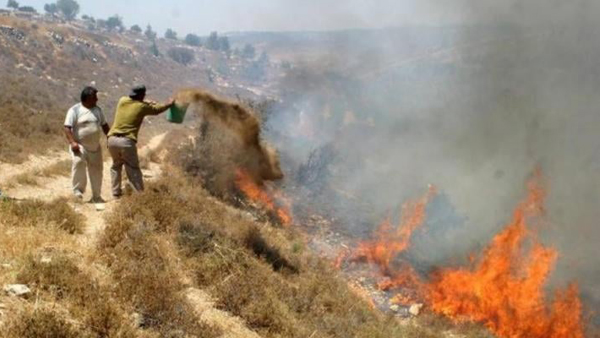 مستوطنون يضرمون النار بأراضٍ في برقة