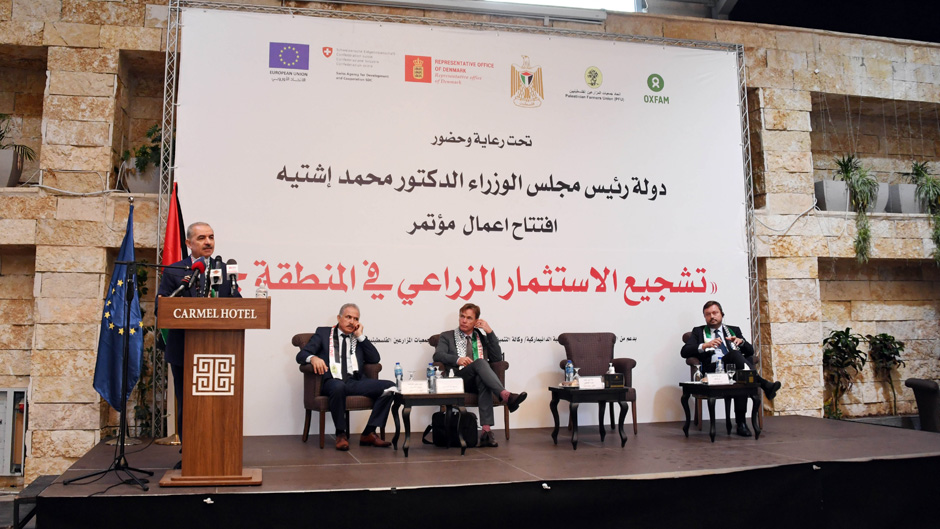 وكان اشتية يتحدث في افتتاح مؤتمر "تشجيع الاستثمار الزراعي في المنطقة (ج)"، الذي ينظمه اتحاد الجمعيات الزراعية في رام الله، بدعم اوروبي– دنماركي، بحضور وزيري الزراعة رياض العطاري والعمل نصري أبو جيش، وممثلين أجانب ومنظمات دولية، ورجال أعمال ومنظمات غير حكومية تعنى بقطاع الزراعة.