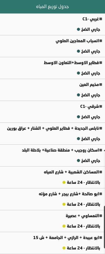 جدول توزيع المياه في نابلس