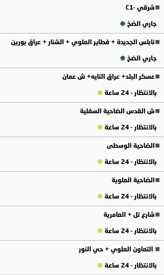 جدول توزيع المياه في نابلس وضواحيها ليوم السبت 23.10.2021.