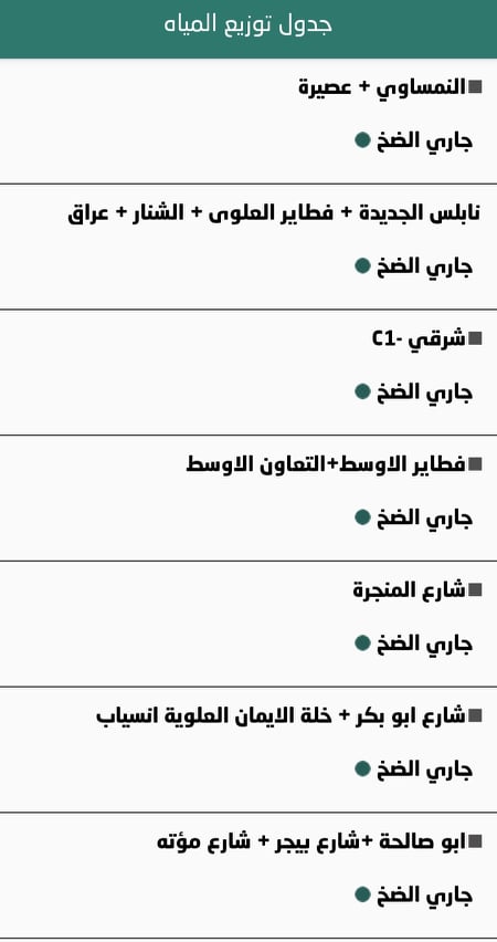 جدول توزيع المياه في نابلس وضواحيها ليوم الخميس 28.10.2021.
