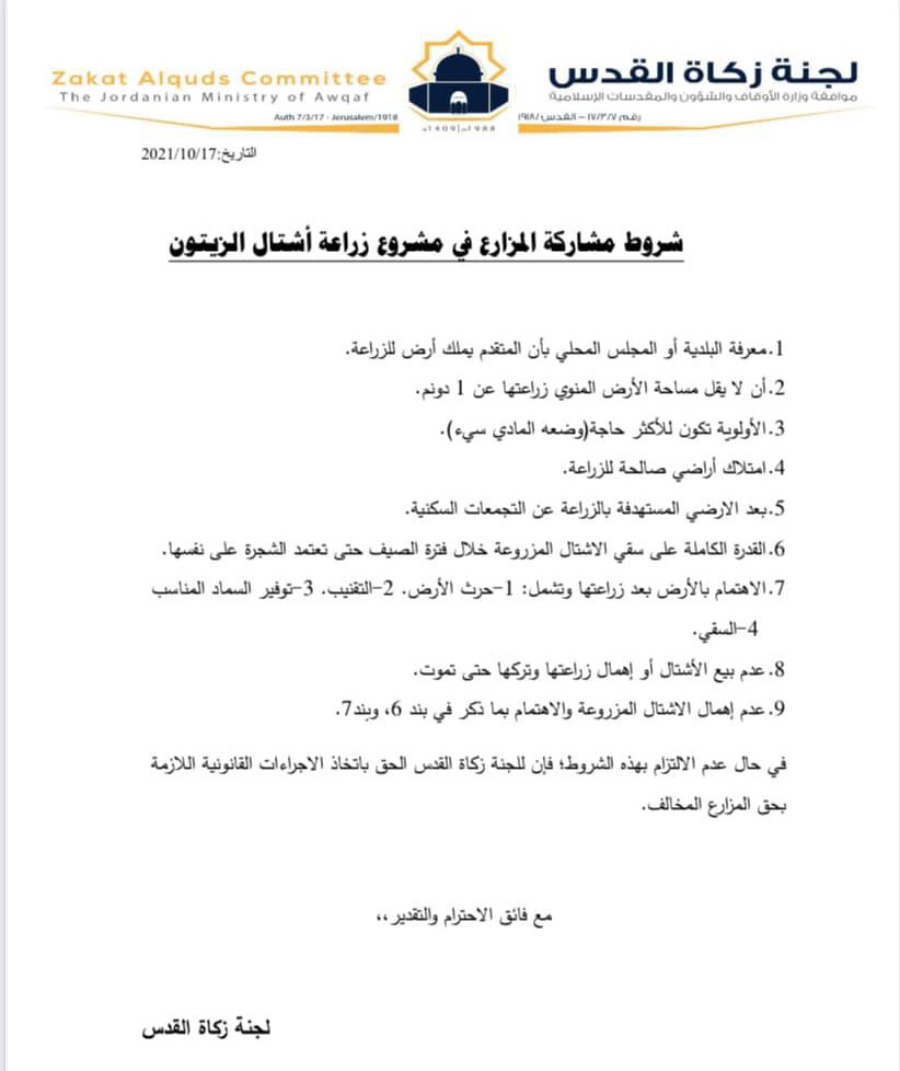 "في إطار التعاون المؤسسي، يعلن المجلس القروي وبالتعاون مع لجنة زكاة القدس عن الشروع في تنفيذ مشروع أشتال الزيتون على من يرغب بالاستفادة من هذا المشروع التوجه إلى المجلس القروي لتعبئة الطلب، آخر موعد هو 02.11.2021".