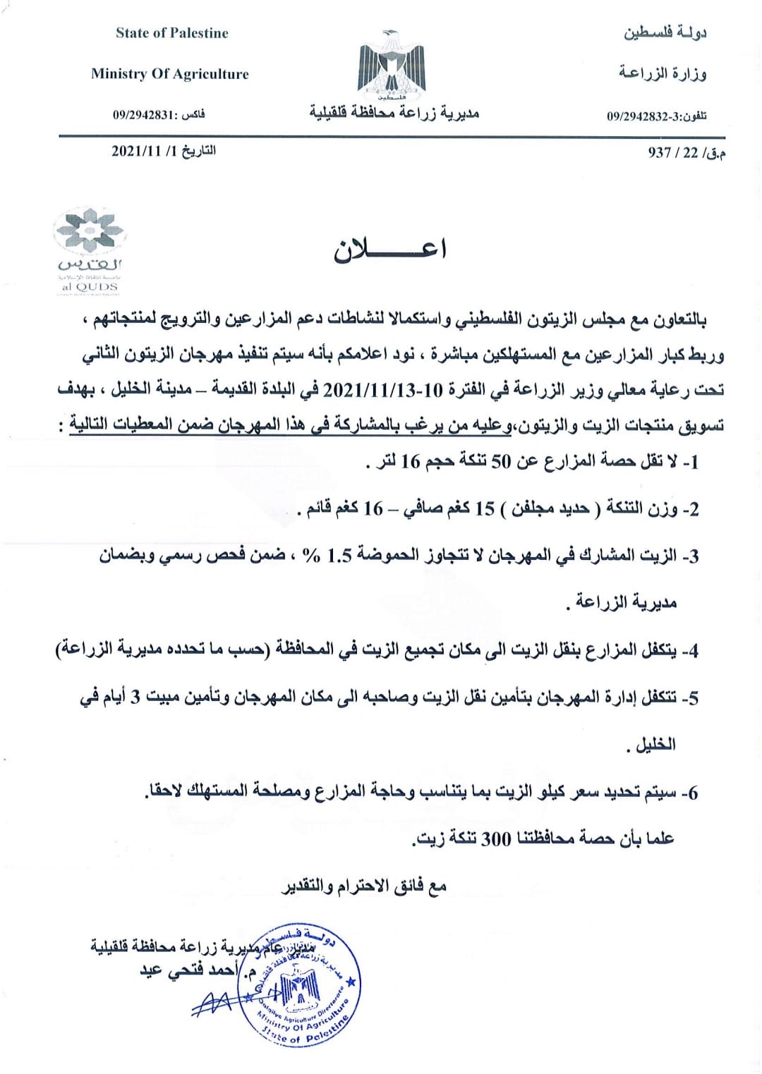 زراعة قلقيلية: مهرجان الزيتون الثاني