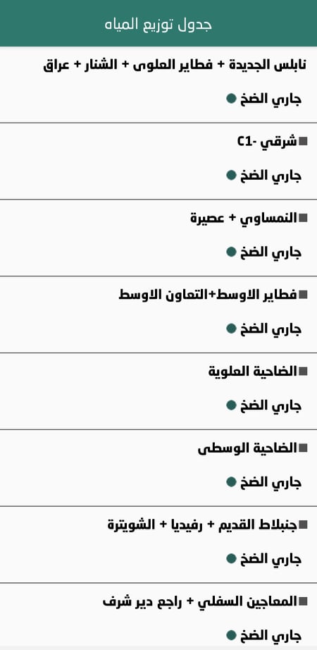 بلدية نابلس: جدول توزيع المياه