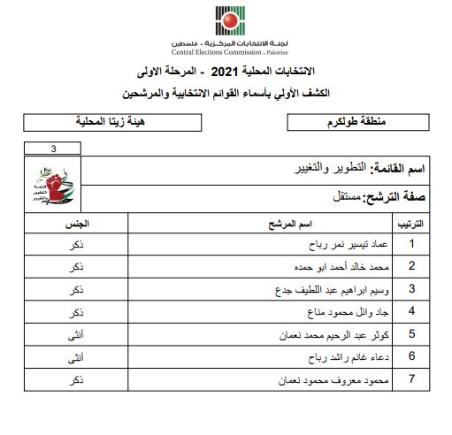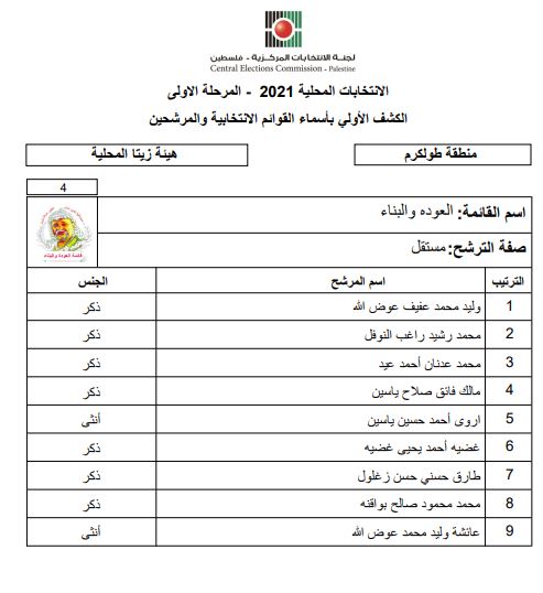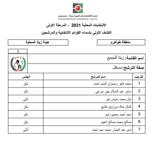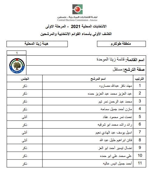 الكشف الأولى بأسماء القوائم الانتخابية والمرشحين للانتخابات المحلية.