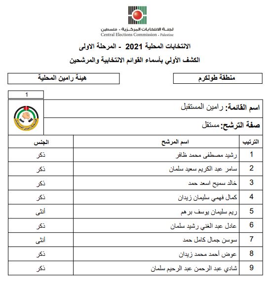الكشف الأولي بأسماء القوائم الانتخابية والمرشحين للانتخابات المحلية.