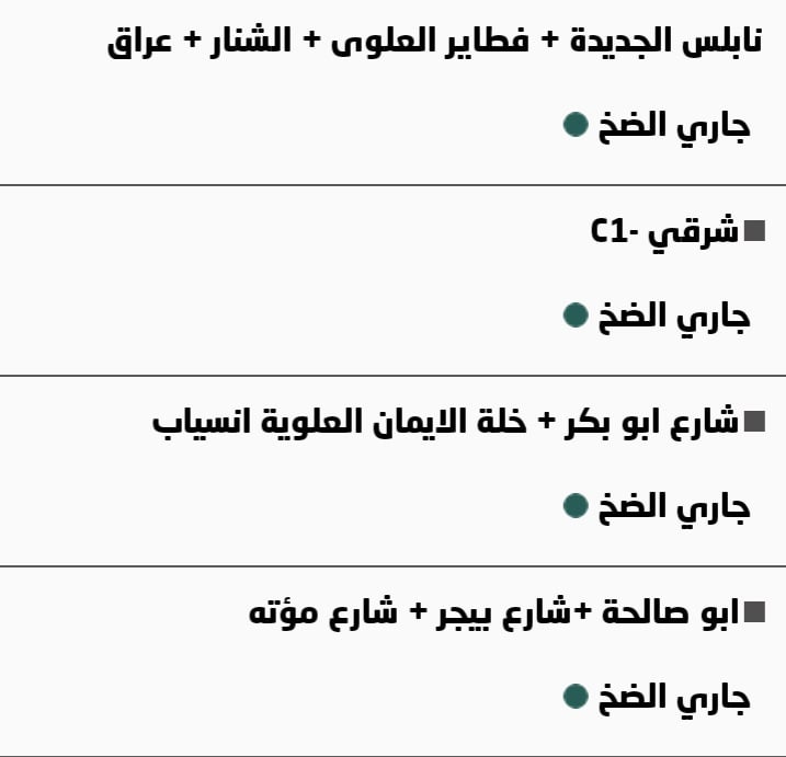 جدول توزيع المياه في نابلس وضواحيها ليوم الأربعاء 10.11.2021.