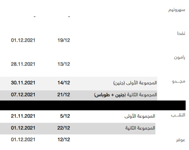 أعلن مكتب اللجنة الدولية للصليب الأحمر في جنين، الأحد 21.11.2021، عن جدول برنامج زيارات أسرى محافظتي جنين وطوباس لشهر كانون الأول المقبل.