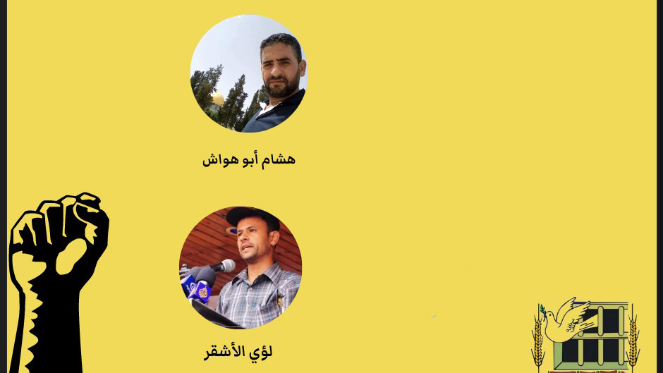 رفضاً لاعتقالهما الإداري، يواصل الإسيران هشام أبو هواش من الخليل ولؤي الأشقر من طولكرم إضرابهما المفتوح عن الطعام.