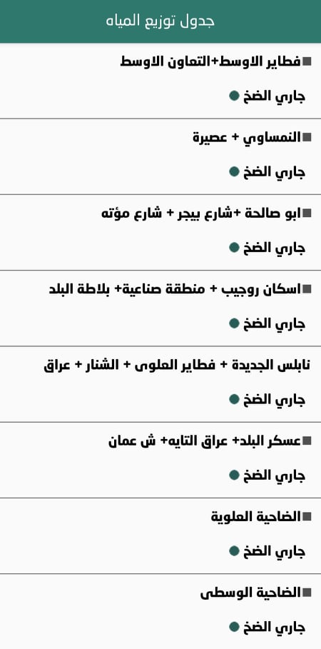 جدول توزيع المياه في نابلس وضواحيها ليوم الاثنين 29.11.2021.