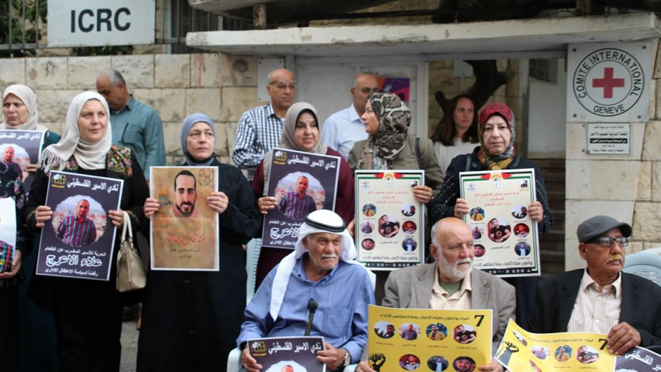 وقفة تضامنية أمام مقر الصليب الأحمر في طولكرم لدعم وإسناد الأسرى المرضى والأسرى القدامى والأسيرات والأسرى المضربين عن الطعام.