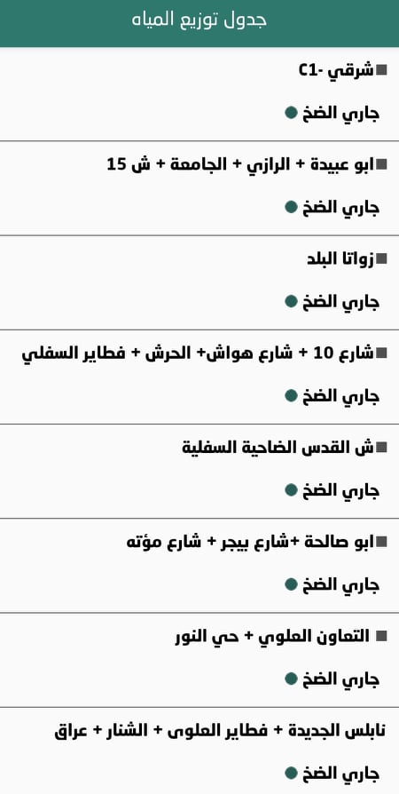 جدول توزيع المياه في نابلس وضواحيها ليوم الأحد 12.12.2021.