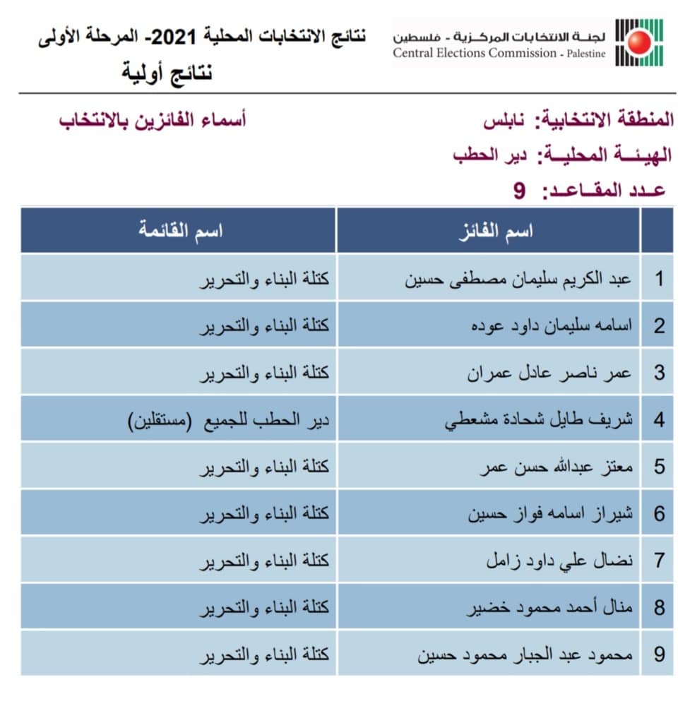دير الحطب: نتائج الانتخابات المحلية الرسمية