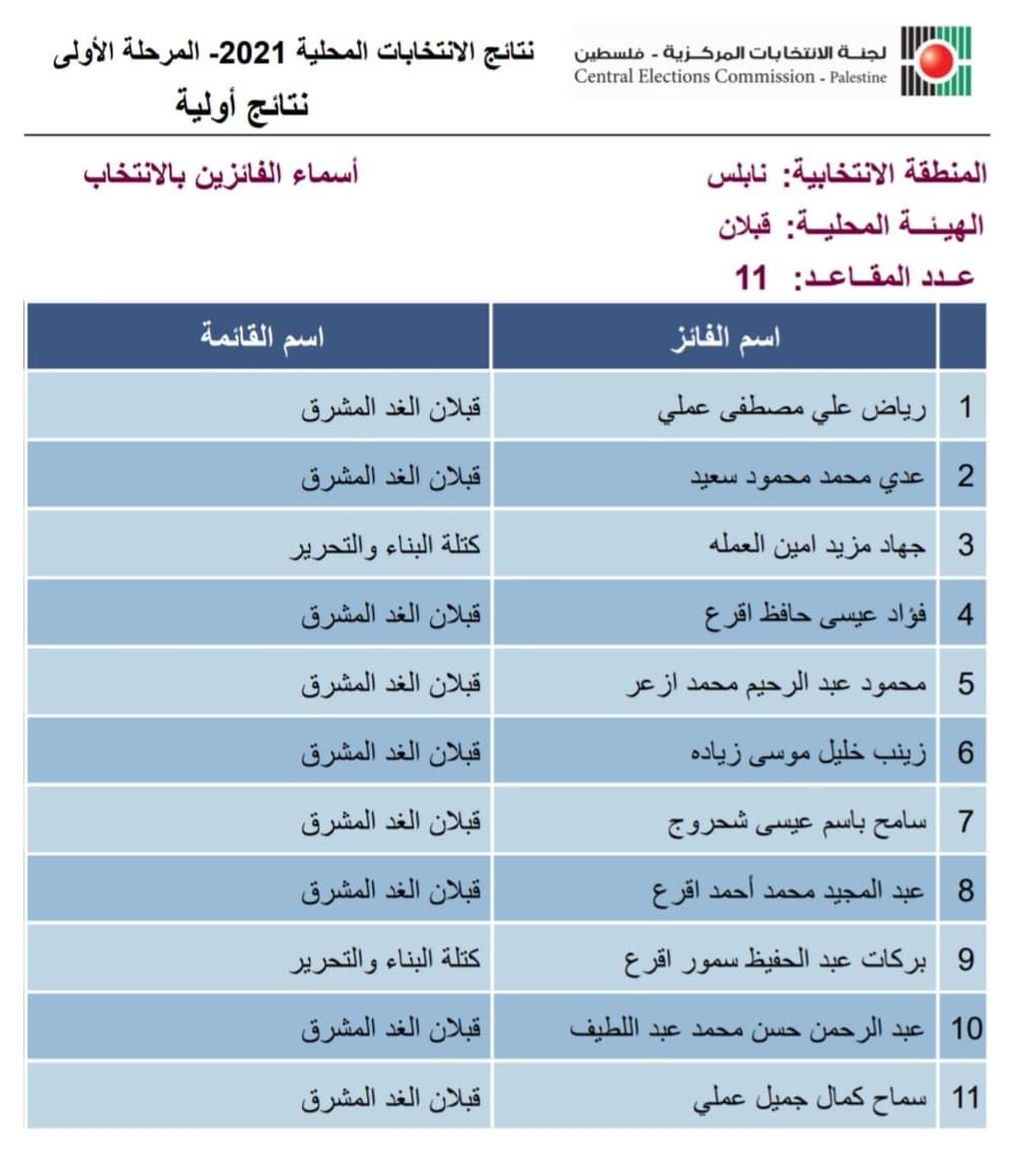 سبسطية: نتائج الانتخابات المحلية الرسمية